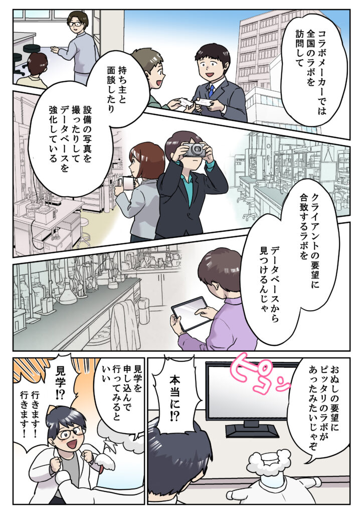 コラボメーカーが提供する「シェアラボ」は、研究目的や実験内容に応じて、既存のラボを一定期間利用できる新しい形態の研究支援サービスです。